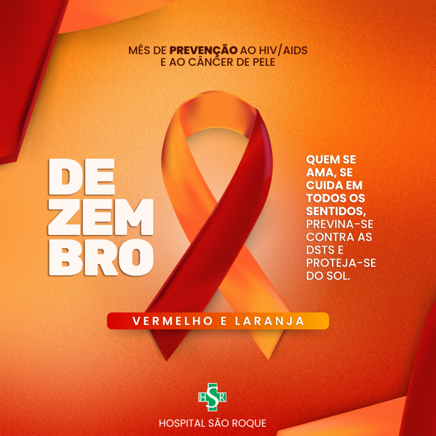 Dezembro Vermelho e Laranja: juntos pela prevenção ao HIV/AIDS e pela atenção ao câncer de pele.